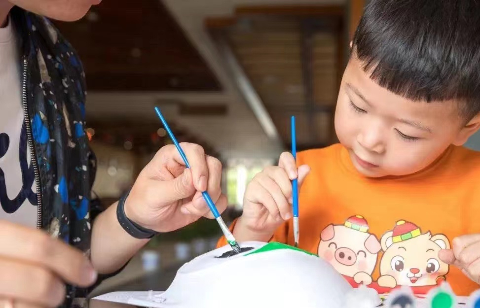 用彩笔在白色的面具上勾勒出了各种图案,有的画起了线描,线条优美,色彩鲜艳,有的画上了自己喜爱的卡通图案,有的则画上了鬼脸,使原本白色的面具通过儿童们的小手变成了不同造型的面具。
