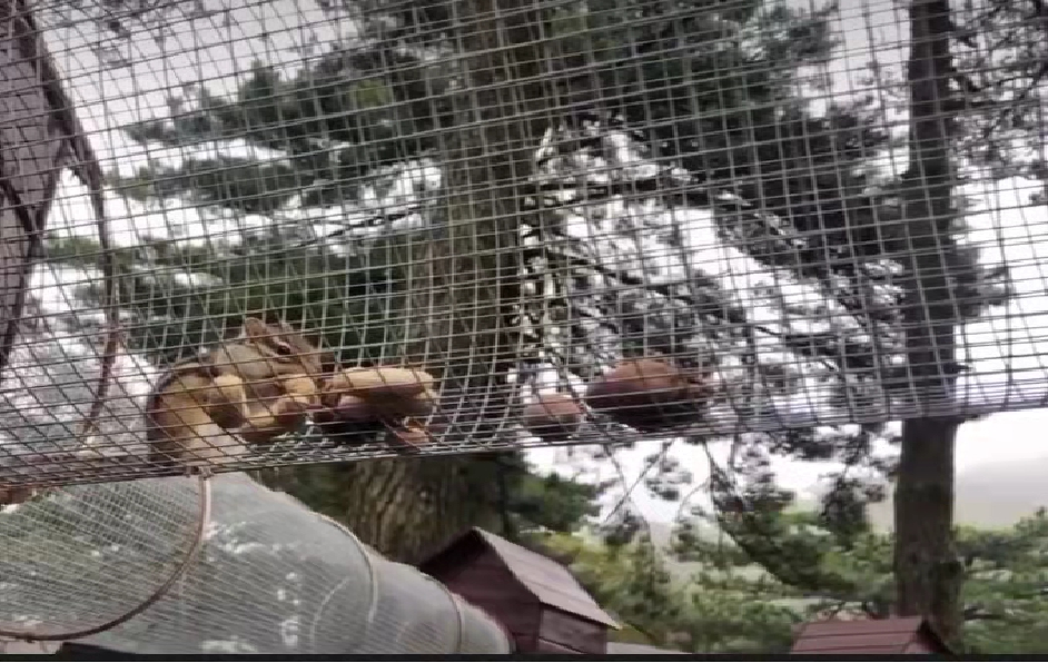 松鼠迷宫是在树林中搭建人行迷宫和松鼠穿行的通道,以达到人与动物亲密接触,趣味互动的项目。