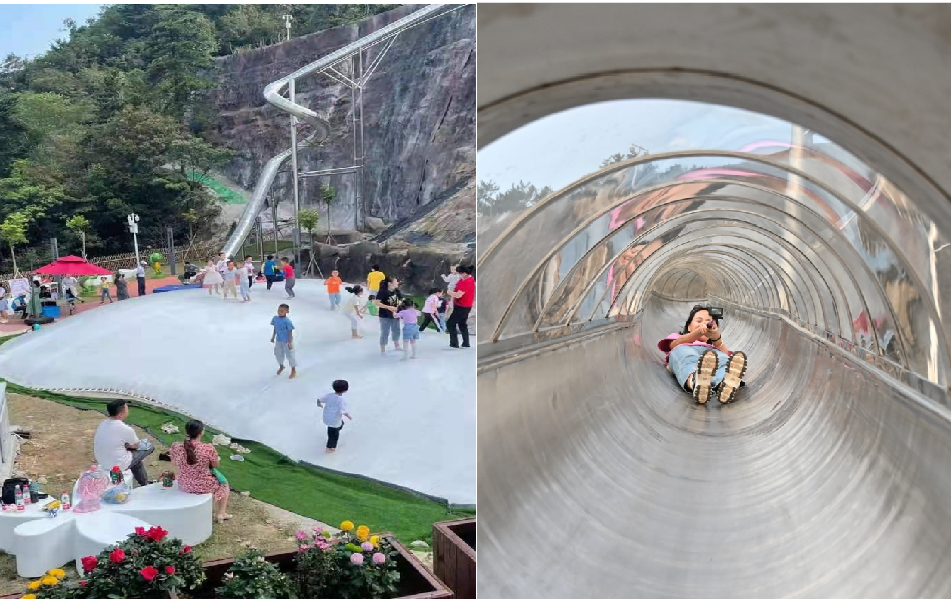 滑道形状独特,呈螺旋状,其设施结构安全耐用,设计巧妙,带给游客安全、欢乐的体验感。