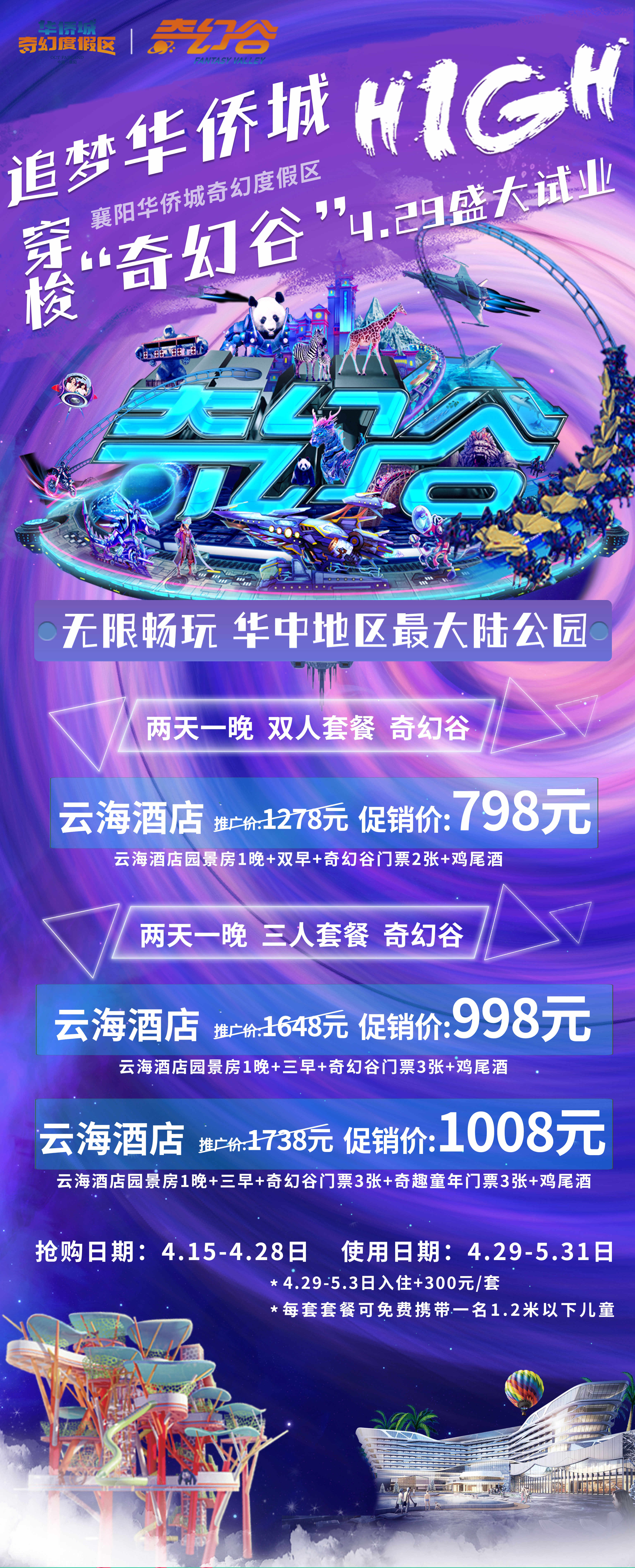奇幻谷云海酒店园景房1晚+双早+奇幻谷门票2张+鸡尾酒